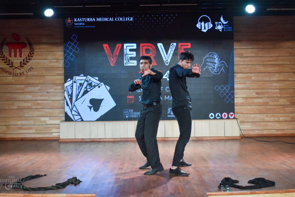 On the 2nd day of 2024 edition of VERVE, performances possessing captivating synergy, where two distinct voices intertwined in a harmonious dance of melody and emotion, were observed in the cultural event “VOCAL DUET”. Event was organised on the 4th of March in TMA Pai Hall 3 at 5pm. Even though teams fought hard to represent their batches, the unique auditory experience they created, evoked a sense of unity and connection among everyone present at the scene. The interplay of tones and timbre felt like a profound  conversation between the performers and the audience.