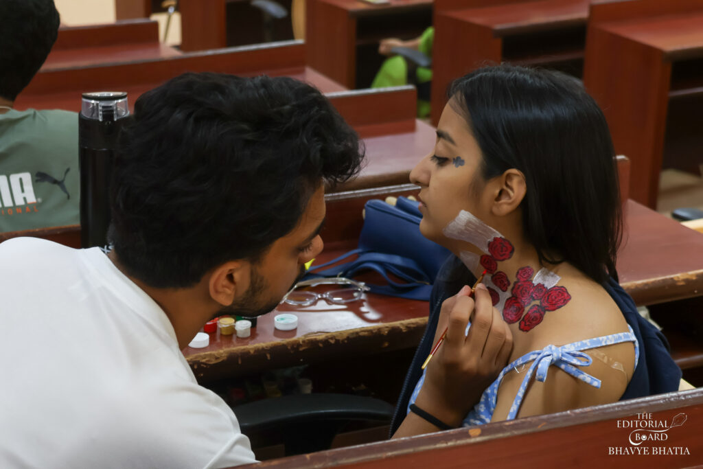 1 pm on the 3rd of March, artists picked up their brushes and readied their partners to quite literally face off other competitors in a poker themed face painting contest.Colours were flying around and so were laughs as beautiful artwork poured into interact halls.Judged by Dr.Chandni Gupta and Dr. Lydia of the department of Anatomy, 2nd years took the victory by placing first and second, while 3rd years placed third.